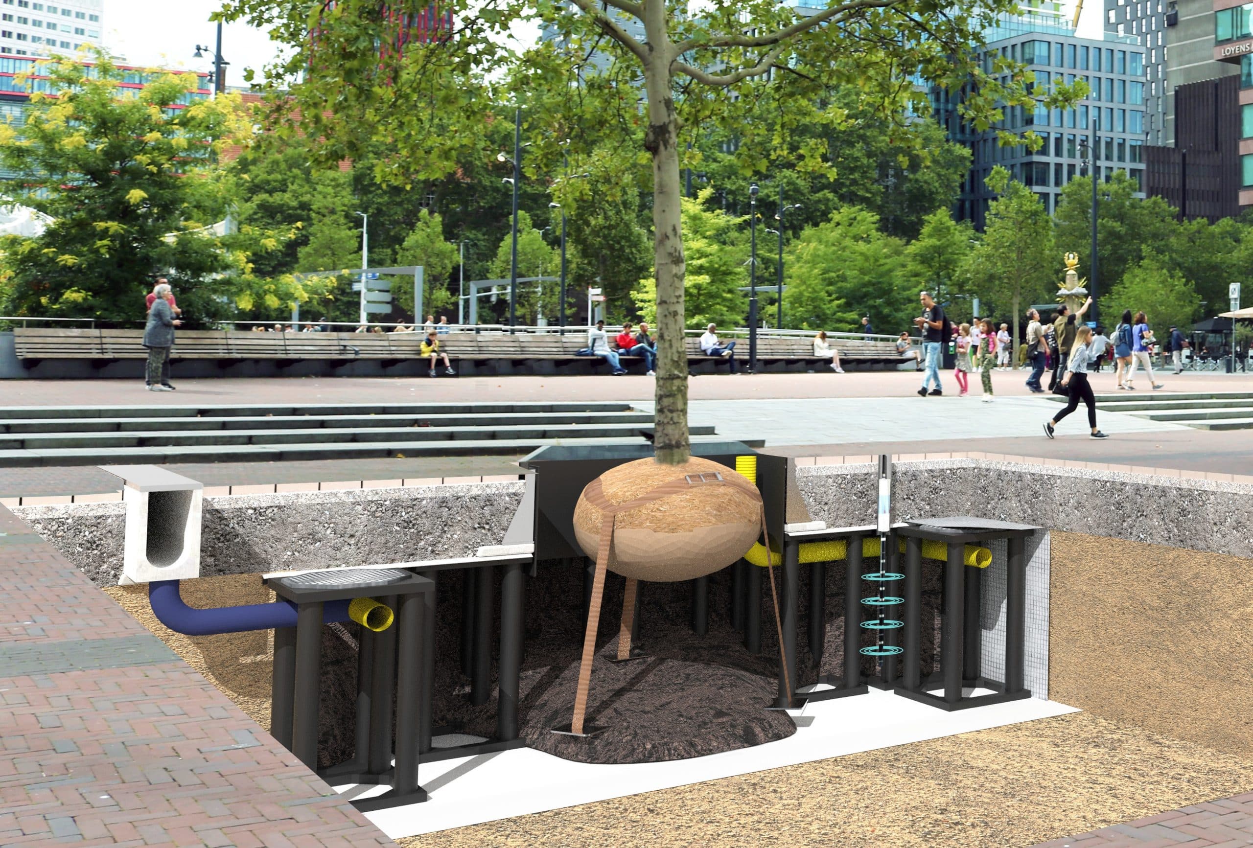 Als TreeBuilders houden wij er rekening mee dat de stedelijke bodem op meerdere manieren wordt gebruikt, zoals voor civiele werken en waterbeheer. Het combineren van groene, blauwe en grijze infrastructuren brengt uitdagingen met zich mee: