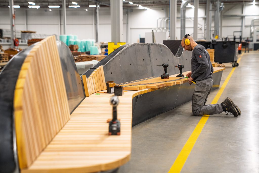 Dat maatwerk bepaalt geen uitzondering is, blijkt uit de cijfers: veruit het grootste deel van de productie van Furns bestaat uit maatwerk. Op de foto een voorbeeld van een voor een daktuin ontworpen bank die door Furns wordt gemaakt. Oscar besluit: ‘Zoals je op de beelden ziet is onze productie ingericht op maatwerk, we draaien onze hand er niet voor om én denken mee over de beste materialen.’